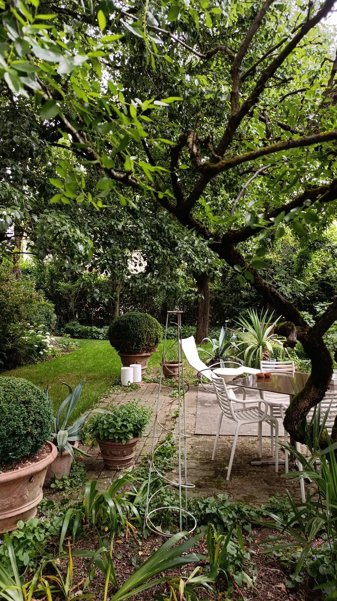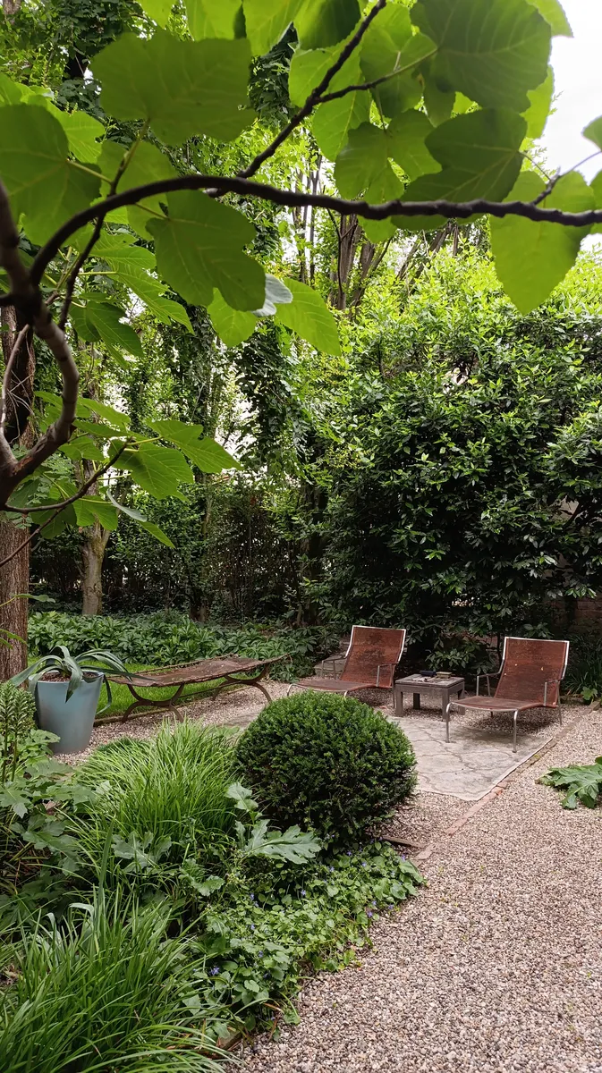 Sono partita, come sempre faccio, da un approccio architettonico: prima la definizione degli spazi, delle zone funzionali, poi la scelta delle piante. Credo profondamente che un giardino debba essere abitato, per questo ho voluto creare aree diverse per vivere all’aperto: una più celata, dove poter pranzare in famiglia, un’altra più ampia per ospitare amici, e altre più silenziose, per sostare o leggere in tranquillità. Lo spazio a disposizione non è troppo ampio – circa 300 metri quadri – perché fa parte dell’originaria corte agricola. Ma questa misura contenuta mi ha permesso di dedicarmi con precisione a ogni dettaglio e ottenere un giardino intimo e molto personale.