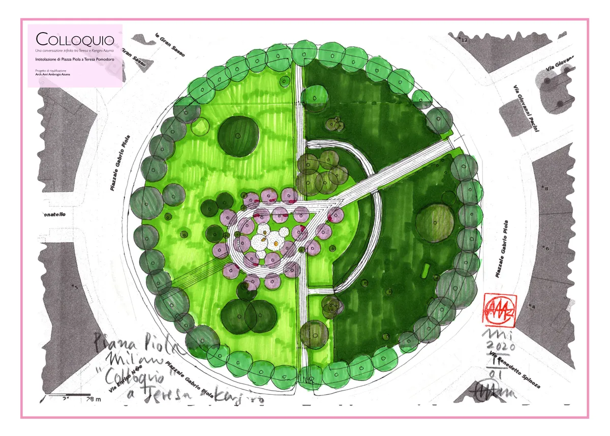 L’idea di un giardino zen dedicato a mia sorella è nata ricordando l’antico rapporto non solo di amicizia ma anche culturale che la avvicinava al maestro Kengiro Azuma, artista di origini giapponesi, che ha lavorato molto qui a Milano, dove ha realizzato numerose sculture. Il progetto di riqualificazione dello spazio è proprio del figlio dello scultore nipponico, Anri Ambrogio Azuma.