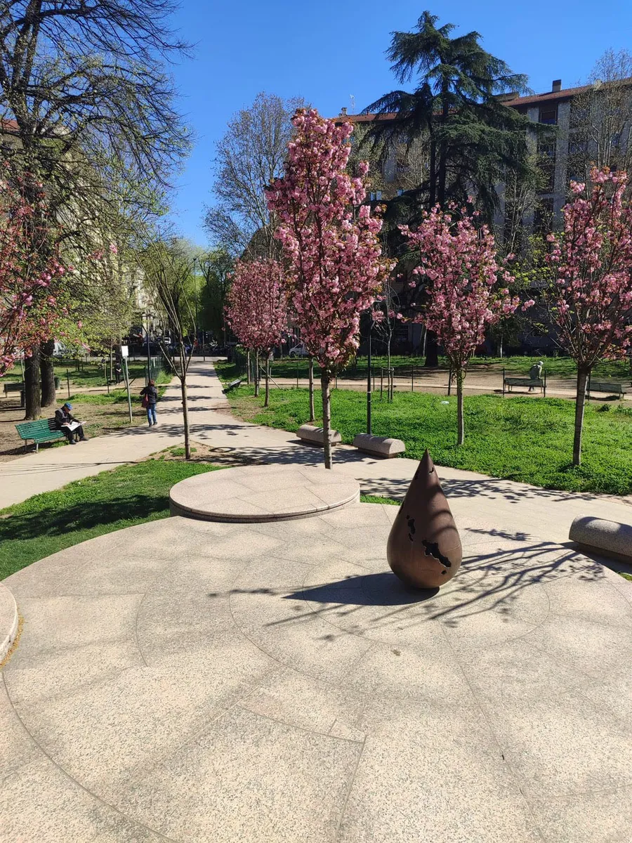 Il giardino di piazza Piola è sempre stato molto frequentato, essendo vicino alle università più importanti della città, non sono pochi i giovani che vengono qui per fare due passi per prendersi un momento di pausa tra una lezione e l’altra. Ogni giorno andando in teatro, anche nelle giornate meno calde, faccio caso al fatto che c’è sempre qualcuno che si ferma qui. Mi piaceva l’idea che nel cuore della città antica, vicina alle università, ci fosse un luogo in cui i giovani studenti fossero invitati a riflettere e meditare. Questo non è l’unico omaggio curato da me e dal teatro No’hma per mia sorella: oltre al giardino abbiamo lanciato un premio internazionale chiamato “Teatro Nudo”, al quale partecipano ogni anno tantissime opere, provenienti da tutti il mondo. Gli spettacoli che vincono il premio vengono integrati nella programmazione al pubblico.