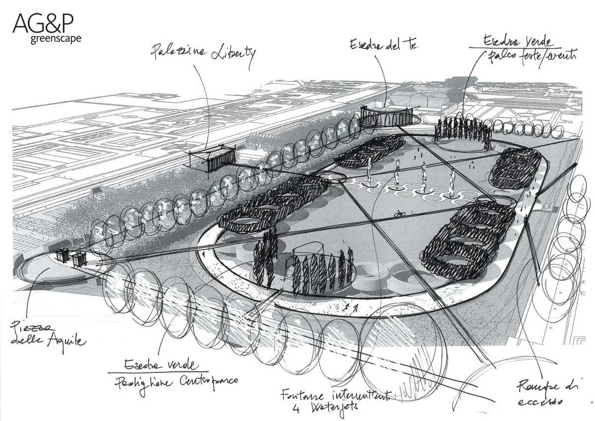 Infine, nella progettazione del parco sono state impiegate tecnologie che consentissero di renderne sostenibile non solo la costruzione, ma anche la gestione quotidiana: «le fontane, per esempio, sono dotate di una vasca per il recupero dell’acqua».
